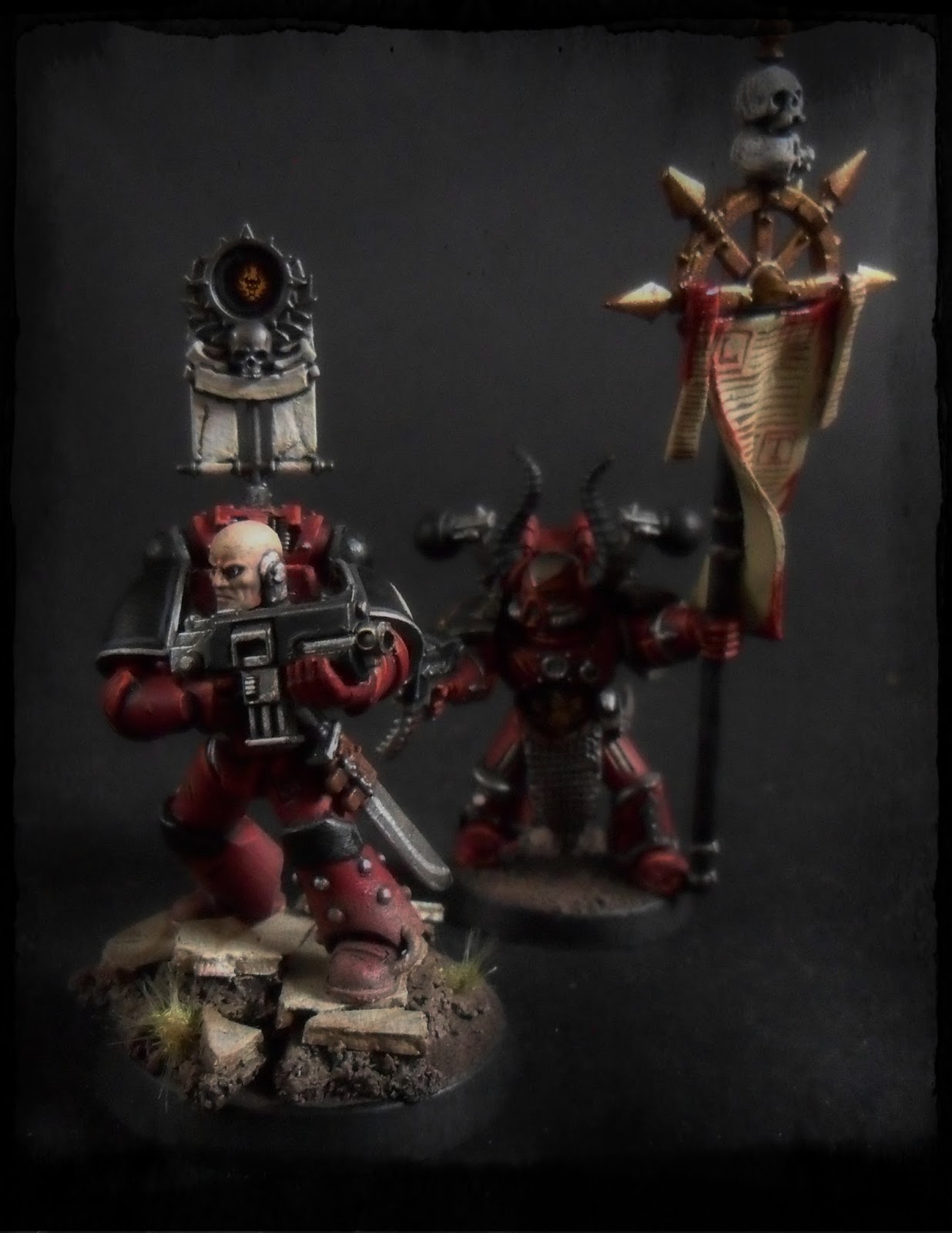 So this is how the Diabolist conversion worked out. Worst parts were cutting the helm down at the bottom so it would fit inside Cassius' torso and also cutting the armour from the Deathwatch cloak so it would fit on the back of the model. I didn't want him to be holding a gun so I may make a servo skull that holds his gun alongside him.